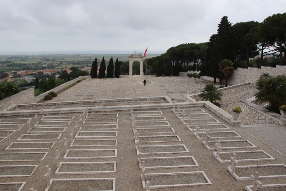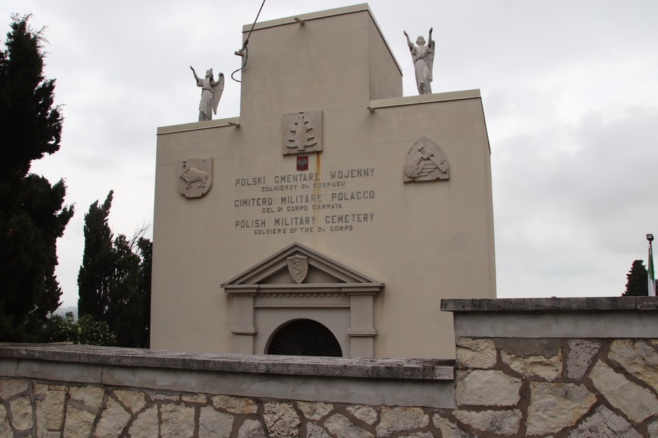 Wracam jednak do okoliczności związanych z pobytem VII rajdu Monte Cassino Intermarium w Loreto. Po hotelowym śniadaniu w postaci szwedzkiego bufetu (jak zwykle) zaczęliśmy przygotowania do wędrówki na cmentarz żołnierzy polskich 2 Korpusu nieopodal, a właściwie u stóp loretańskiego sanktuarium. Powitała nas tam