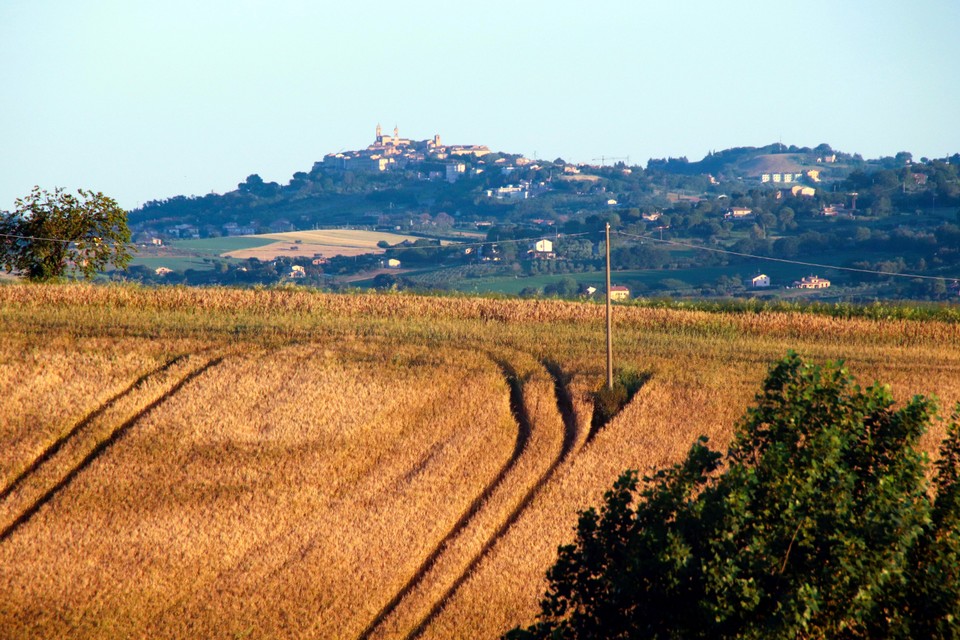 „na polu” – jak określił jej miejsce ksiądz kapelan. Po galicyjsku oznacza to tyle, że nie w domu. Ponieważ uczestnicy VII Rajdu Monte Cassino Intermarium byli tej nocy rozlokowani w dwóch domach, miejsce eucharystycznego spotkania wyznaczone zostało w zacisznym miejscu otoczonym palmami z pięknym widokiem na rozległą dolinę z dominantą w postaci zamku oraz kilku wież kościelnych, poniżej których rozsiadły się zabudowania niewielkiego miasteczka.Po Mszy świętej i modlitwie przed podróżą oraz krótkim streszczeniu trasy przez komandora rajdu Artura Sobótkę ruszyliśmy w trasę żegnani bardzo ciepło przez stałych mieszkańców domów w których spędziliśmy nocleg. Od tego miejsca do miasta Porto Sant'Elpidio droga wiodła kilkaset metrów białym, żwirowym traktem przypominającym strade bianche (coroczny, słynny jednodniowy wyścig kolarski w Toskanii, w dużej mierze prowadzony właśnie po szutrowych drogach).