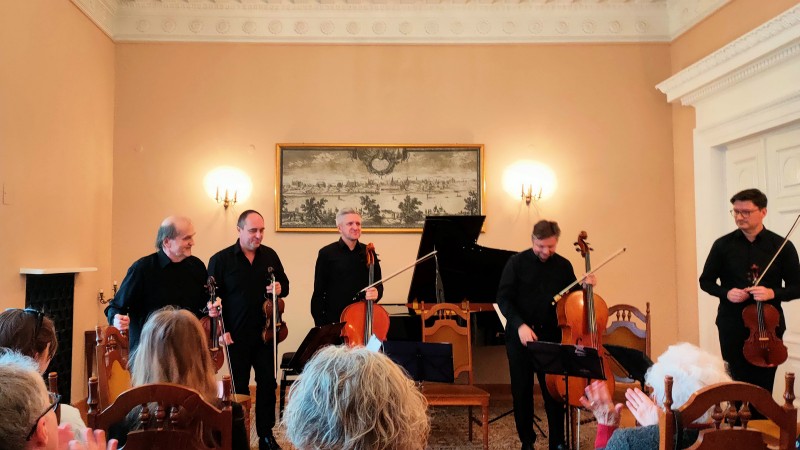 ...następuje finałowa część Kwartetu „Sądeckiego" i... kolejna konsternacja. To po prostu szalony oberek, rodem z środkowej części Polski. Maestria kompozytorska jest tu zdwojona maestrią wykonawczą. Tempo iście kosmiczne, linia melodyczna także, no i wykonawstwo! Tu pozwolę sobie na wymienienie wszystkich muzyków kwartetu Prima Vista. A więc oprócz Krzysztofa Bzówki – I skrzypce, na wysokości zadania stanęli: Wojciech Hartman – II skrzypce, Marek Czech – altówka i Tomasz Błaszczak – wiolonczela. W kwartecie wymiennie uczestniczyli również Piotr Hausenplas – wiolonczela oraz Paweł Pańta – kontrabas. Wracając do oberka, przepraszam – Presto rustico, najbardziej wirtuozowski był fragment, gdy po kolei, w szalonym tempie poszczególne instrumenty powtarzały ośmiotaktowy temat. Końcowe dwa akordy połączyły się z oklaskami i aplauzem publiczności w jedno.