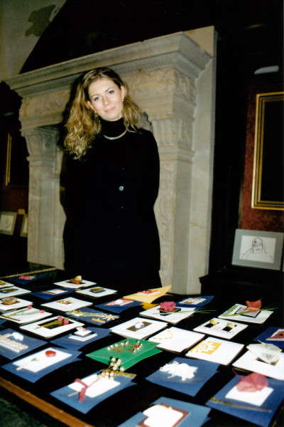Na koniec zostawiłem deser. Miłym odkryciem Warsztatów w Zamku Czocha była Magda Wostal. Przywiozła ze sobą kolekcję kart okolicznościowych wykonanych na zapotrzebowanie domowe, ale chyba również po to, by uzewnętrznić swoją w gruncie rzeczy artystyczną duszę. Szalona prostota a jednocześnie dokładność wykonania. Pomysły na zastosowanie całkiem prozaicznych tworzyw (korek, opakowania po kosmetykach, muszelki, itp.) do stworzenia miniatury plastycznej spotkały się z żywym zainteresowaniem, a nawet propozycjami kupna.