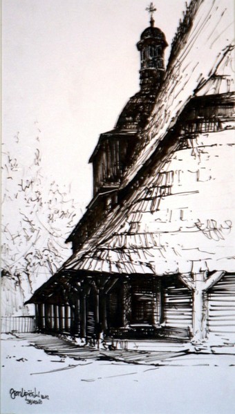 Na wystawie zostało zaprezentowanych kilkanaście prac w postaci obrazów i rysunków. Mnie szczególnie utkwiła akwarela przedstawiająca cerkiew w Komańczy (na zdjęciu obok) i rysunek tuszem fragmentu kościoła w Sękowej – obiekty te znam z czasów moich pieszych wędrówek po Bieszczadach i Beskidzie Niskim. Ciekawiło mnie również to, jak długo wytrzymywały pozowanie słonie, żaba, czy jeż – z wielką precyzją szczegółów anatomicznych narysowane ołówkiem przez Jana Lipińskiego. Wreszcie moją uwagę przykuły akwarele przedstawiające pejzaże mocno zsyntetyzowane, niemniej oddające klimat miejsca (jak np. rynek w Kazimierzu – zdjęcie ostatnie).